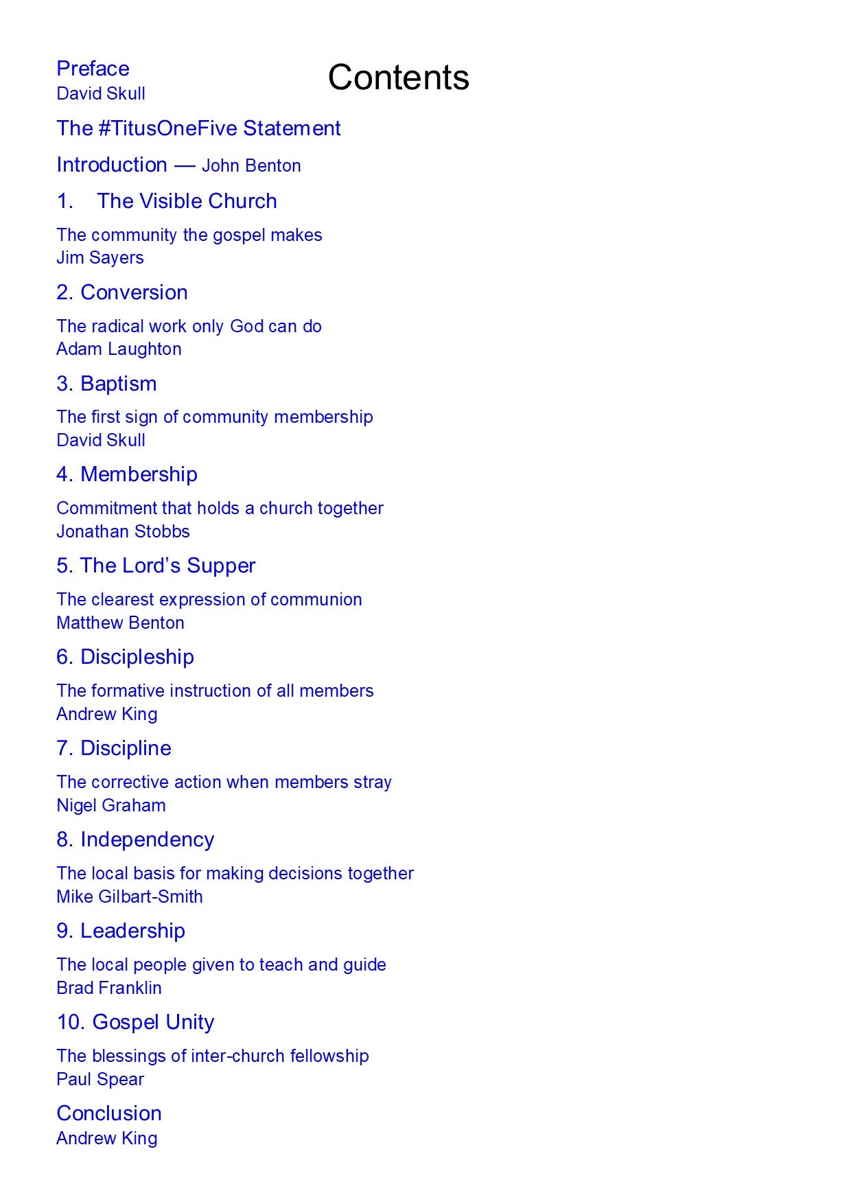 The vision of this volume is that the whole way a church is formed, run and led should work for the health of all its members and for the thriving of the church as a community of God's people. It is a church with an intentional mind-set throughout. The church of Christ will be completely pure only in the New Creation. But local churches are to be a colony of that 'Pure Church' now, here on earth. This book is a call to work towards that purity.